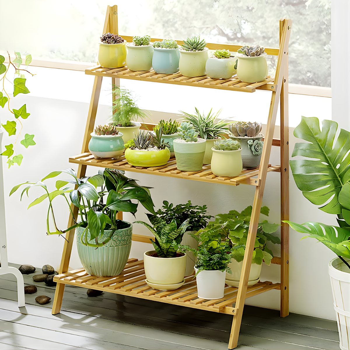 Want your plants to stand out? This bamboo plant stand features a folding, multi-tier design, allowing you to display plants beautifully indoors or outdoors.