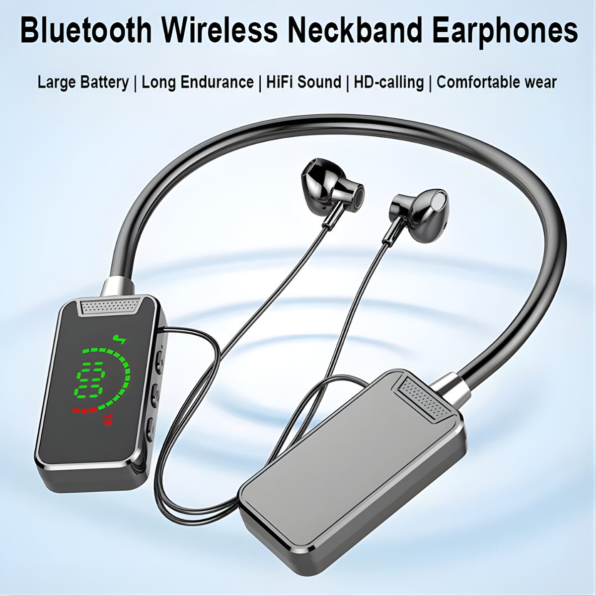 Bluetooth neckband headphones designed for busy, active lifestyles, combining secure neckband comfort, immersive 9D stereo sound, hands-free calling, LED battery display, and long playtime so you can enjoy music, calls, and workouts without constant charging or slipping earbuds.