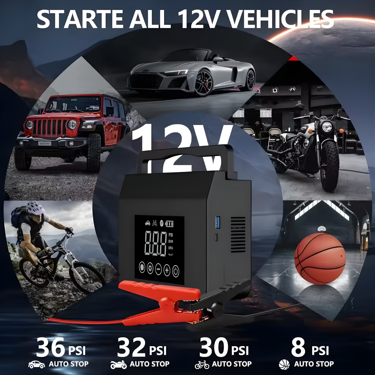 • Anyone Who Drives a Car: Perfect for all drivers who want an affordable, reliable way to handle flat tires and dead batteries on the go.