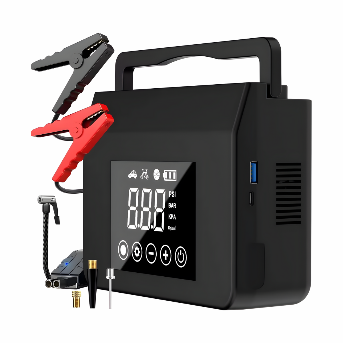 Be ready for any road emergency with the car jump starter with air compressor. Jump-start your car, inflate tires, and stay safe on the road with this portable, multifunctional tool!