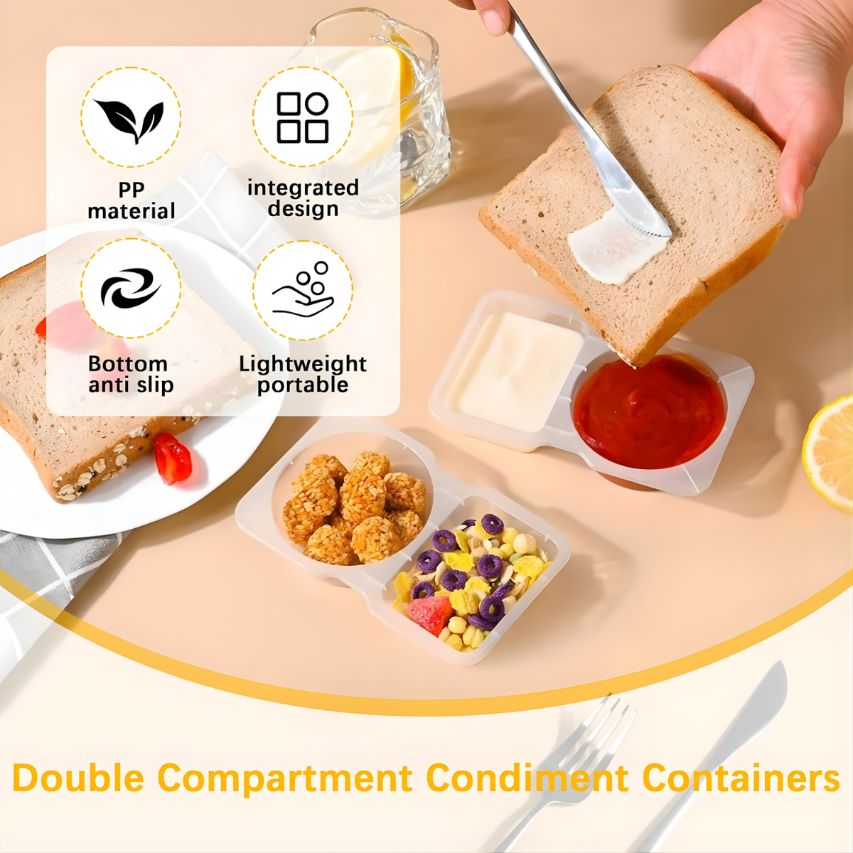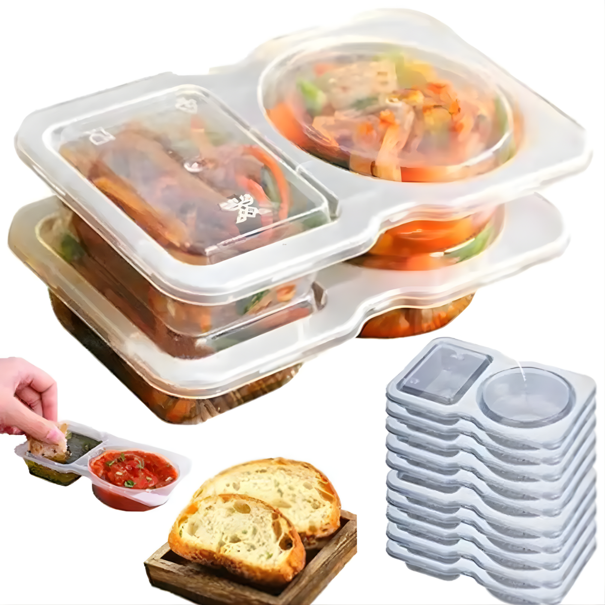 • 20 x Dual-Compartment Condiment Cups with Lids