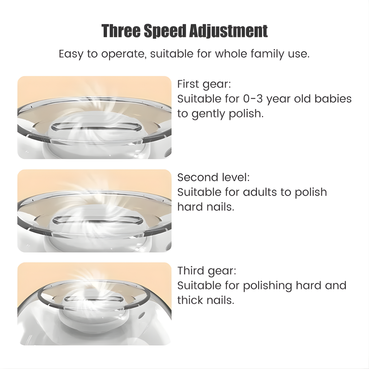 With three adjustable speeds, you can customize the experience. Gentle for babies, medium for adults, and high speed for thick or hard nails. That flexibility makes this one of the most practical electric nail clippers for adults and families.