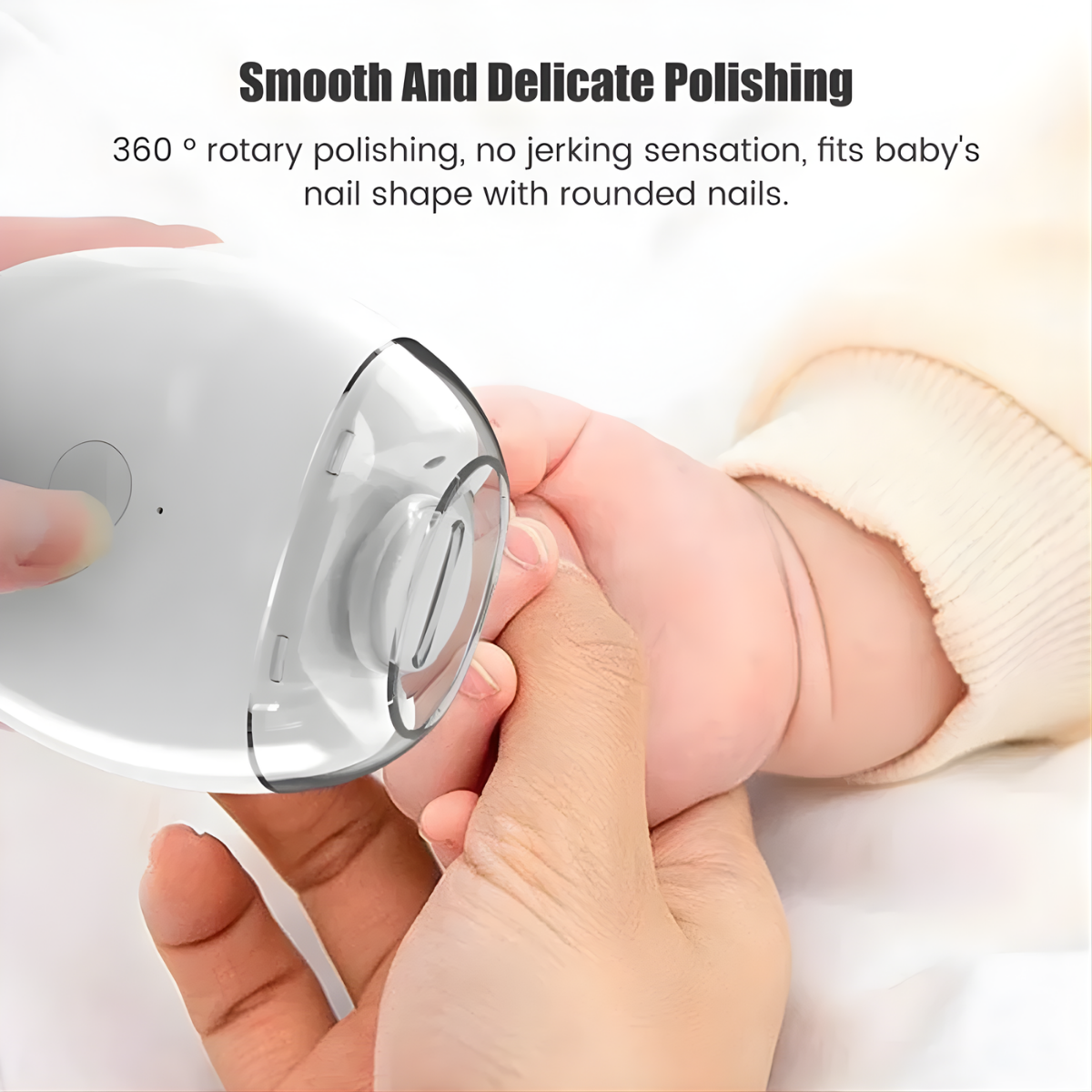 Electric nail clipper designed for safe, quiet, and effortless nail care, combining automatic clipping, smooth 360° grinding, LED lighting, and debris storage to make manicures stress-free for babies, adults, and seniors at home.