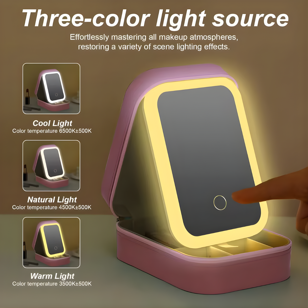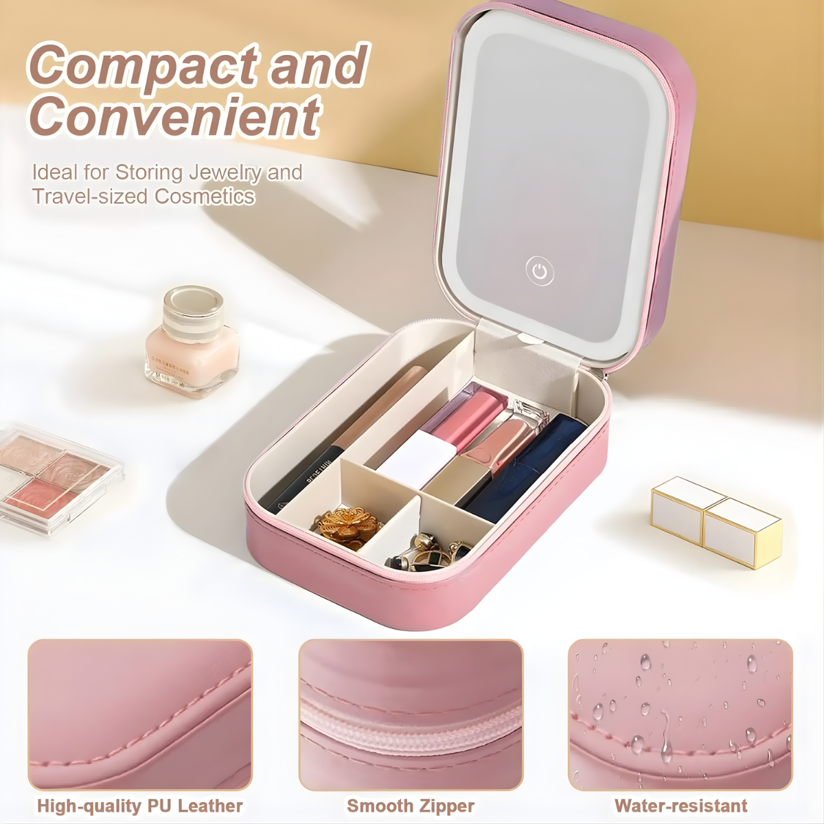Travel with ease and elegance! The Jewelry Box for Travel features a compact design, an LED-lit mirror, and spacious compartments for jewelry and makeup. With 3 adjustable light modes and a rechargeable battery, it’s the perfect travel companion. Get yours today!