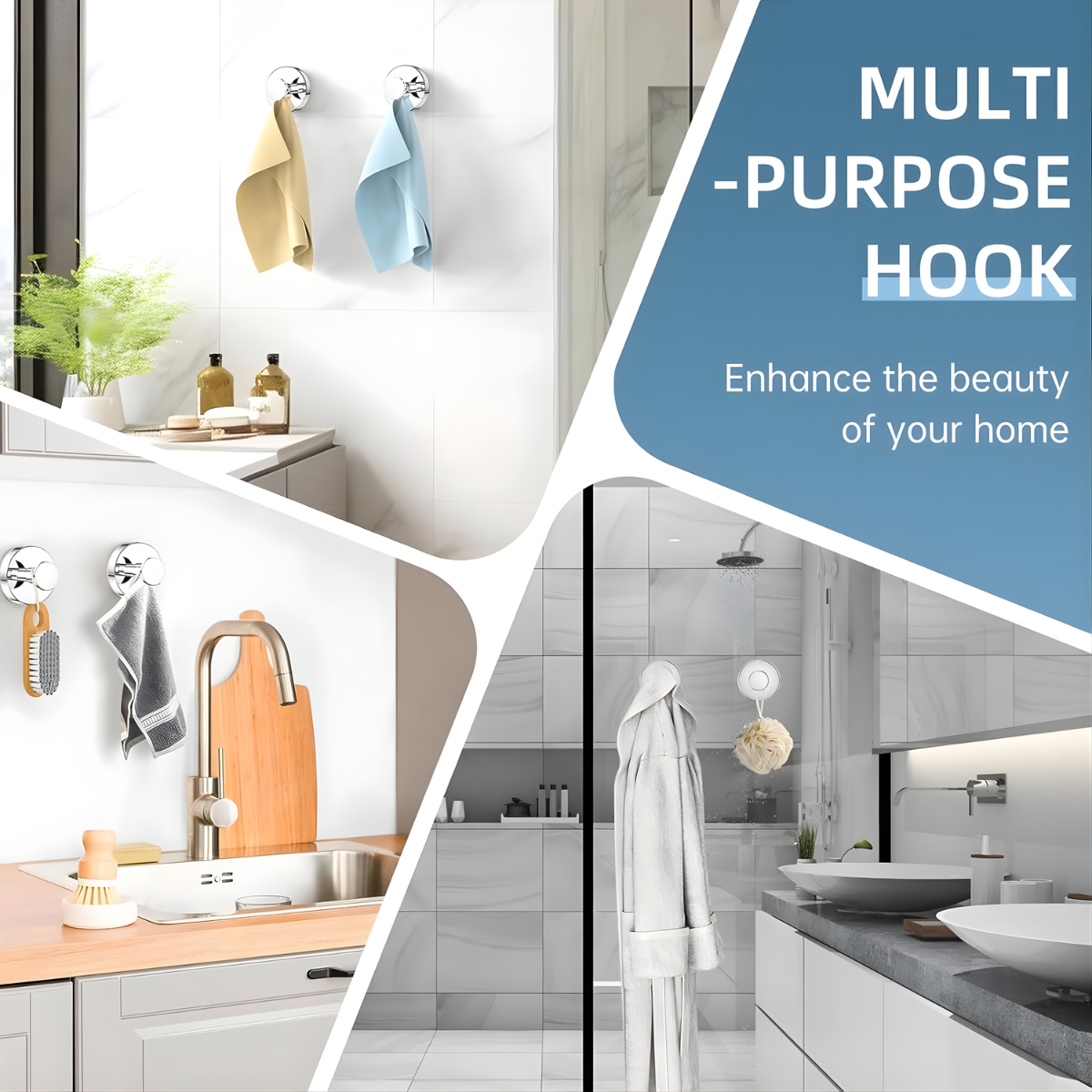 These Kitchen Wall Hooks use strong vacuum suction to stick instantly—no tools, no mess. Perfect for towels, handbags, utensils, or bathroom essentials. Easy to install, reusable, and ideal for kitchens, bathrooms, and glass surfaces.