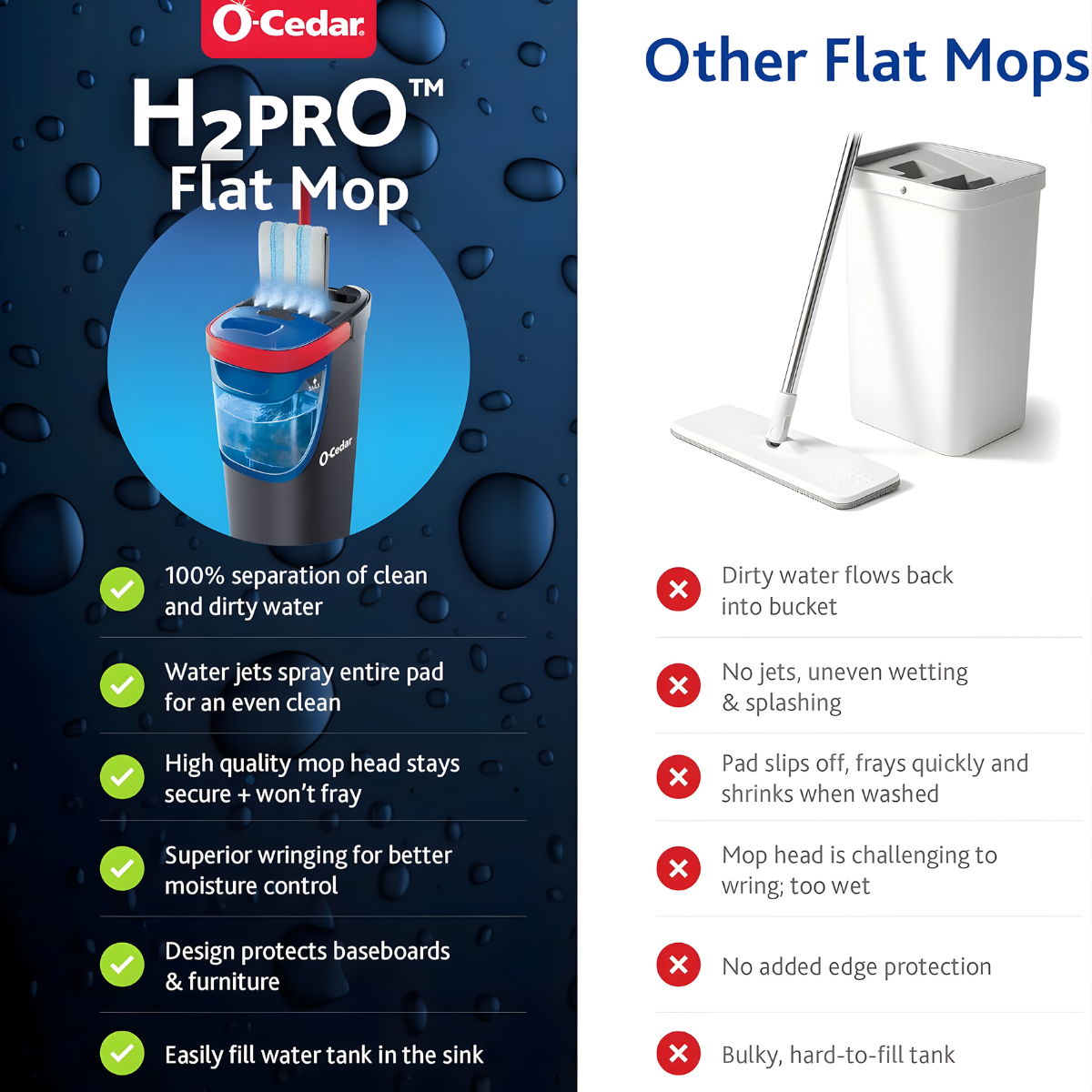 Microfiber flat mop designed to separate clean and dirty water, reduce effort, and deliver streak-free results on hardwood, tile, laminate, and more—making everyday floor cleaning faster, easier, and more satisfying.