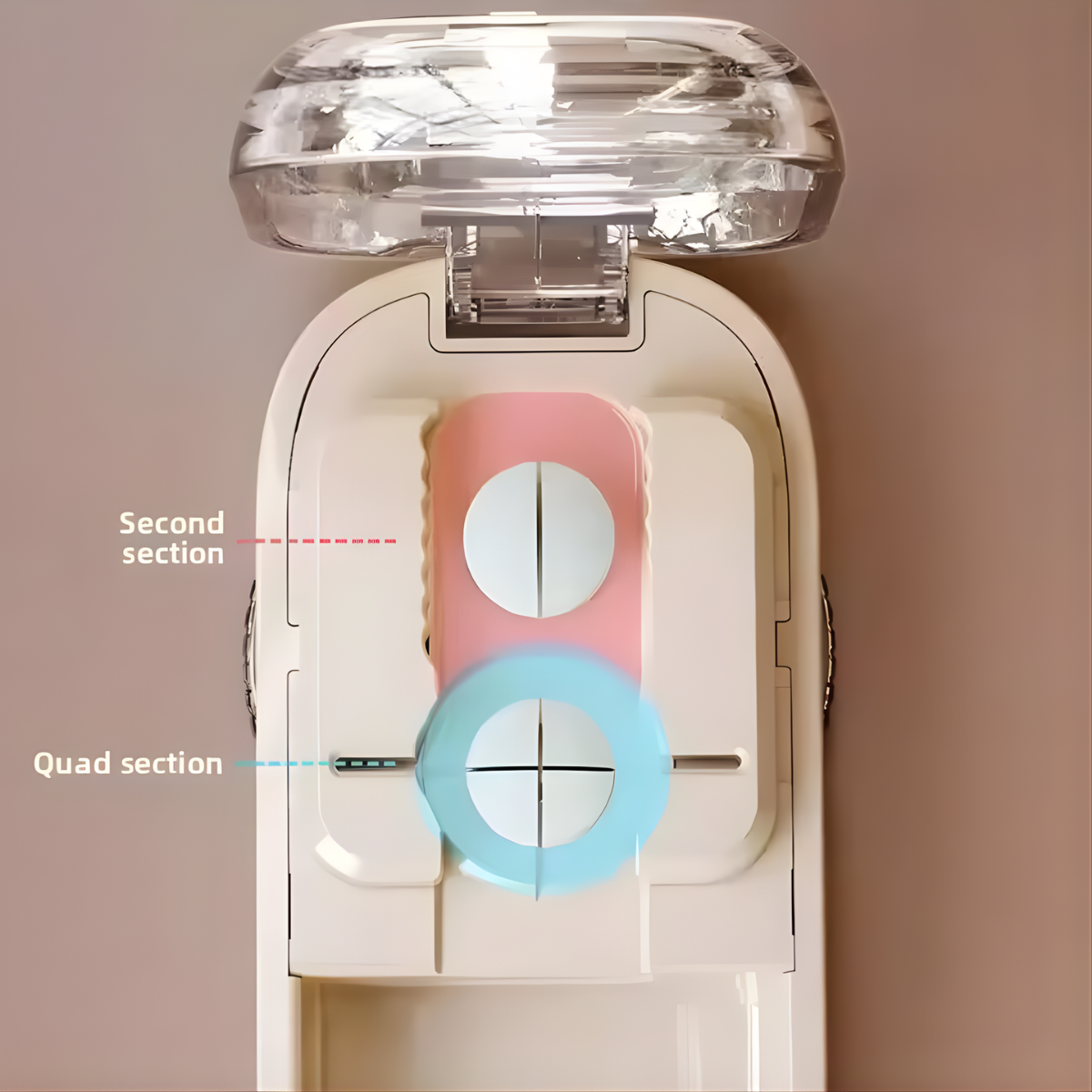 This tool combines cutting, crushing, and storage into one compact, easy-to-use device. Whether you need to split pills into halves or quarters, crush tablets into powder, or store doses safely, everything happens in one place—no extra tools needed.