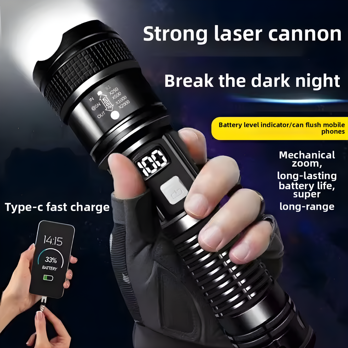The zoom feature lets you switch from lighting a whole campsite to focusing on a far object instantly. The waterproof build means rain won’t stop you. And the power bank feature can literally save your day when your phone battery hits 1%.