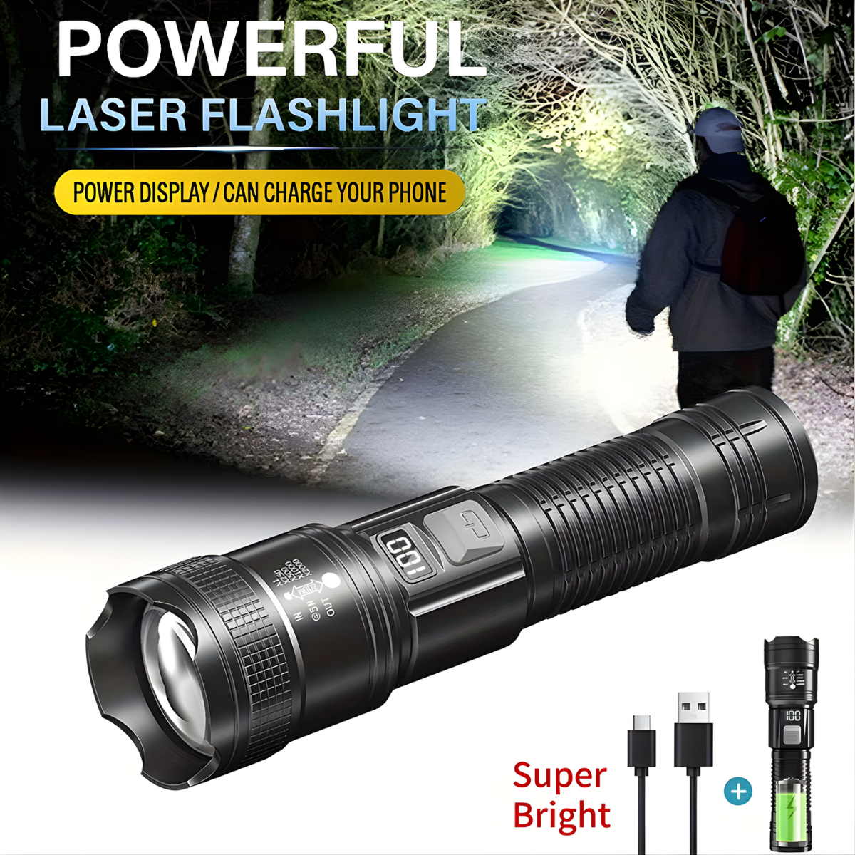 Ever had your flashlight die right when you needed it most? This rechargeable LED flashlight is super bright, zoomable, waterproof, and even shows battery percentage on an LCD screen. Perfect for camping, emergencies, night walks, and power cuts—small enough to carry, powerful enough to trust.