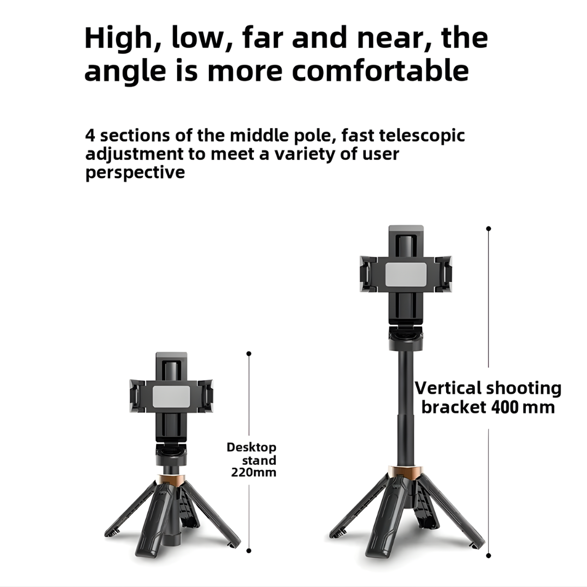This selfie stick tripod is a true all-in-one solution designed for modern phone users. It works as a selfie stick, phone stand, shooting handle, and tripod—all in one compact body. When folded, it measures only 11 cm in length, making it smaller than most smartphones and perfect for pockets, handbags, or backpacks. Whether you’re traveling, vlogging, attending a party, or just capturing daily moments, this selfie stick tripod gives you freedom, stability, and better angles without carrying bulky gear.