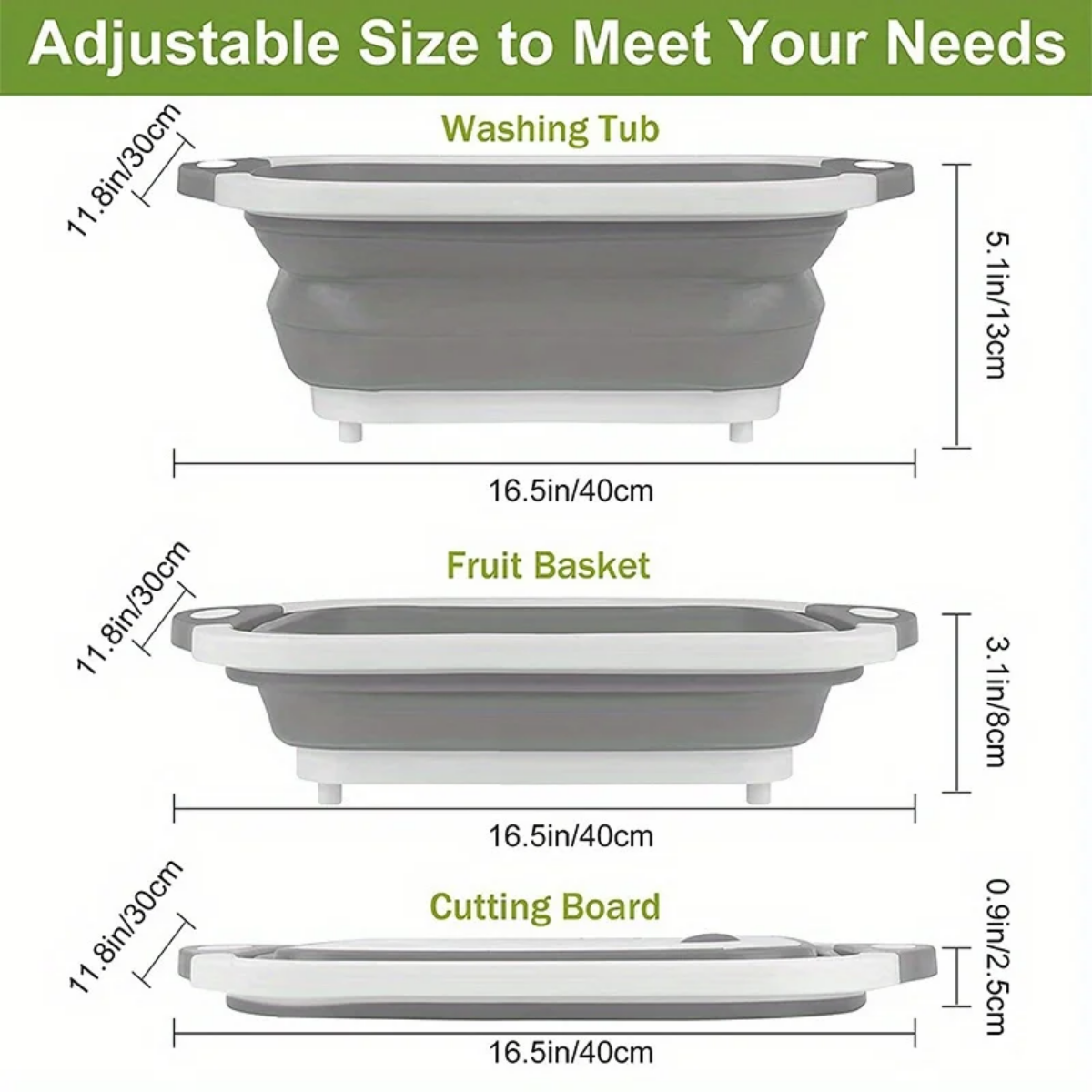 This Space-Saving Kitchen Tools set has you covered! The 3-in-1 Collapsible Cutting Board folds up to save space, doubles as a chopping board, and turns into a drainage basket. Perfect for small kitchens, camping, or anyone who needs quick and efficient meal prep without sacrificing storage space. A must-have for every kitchen!