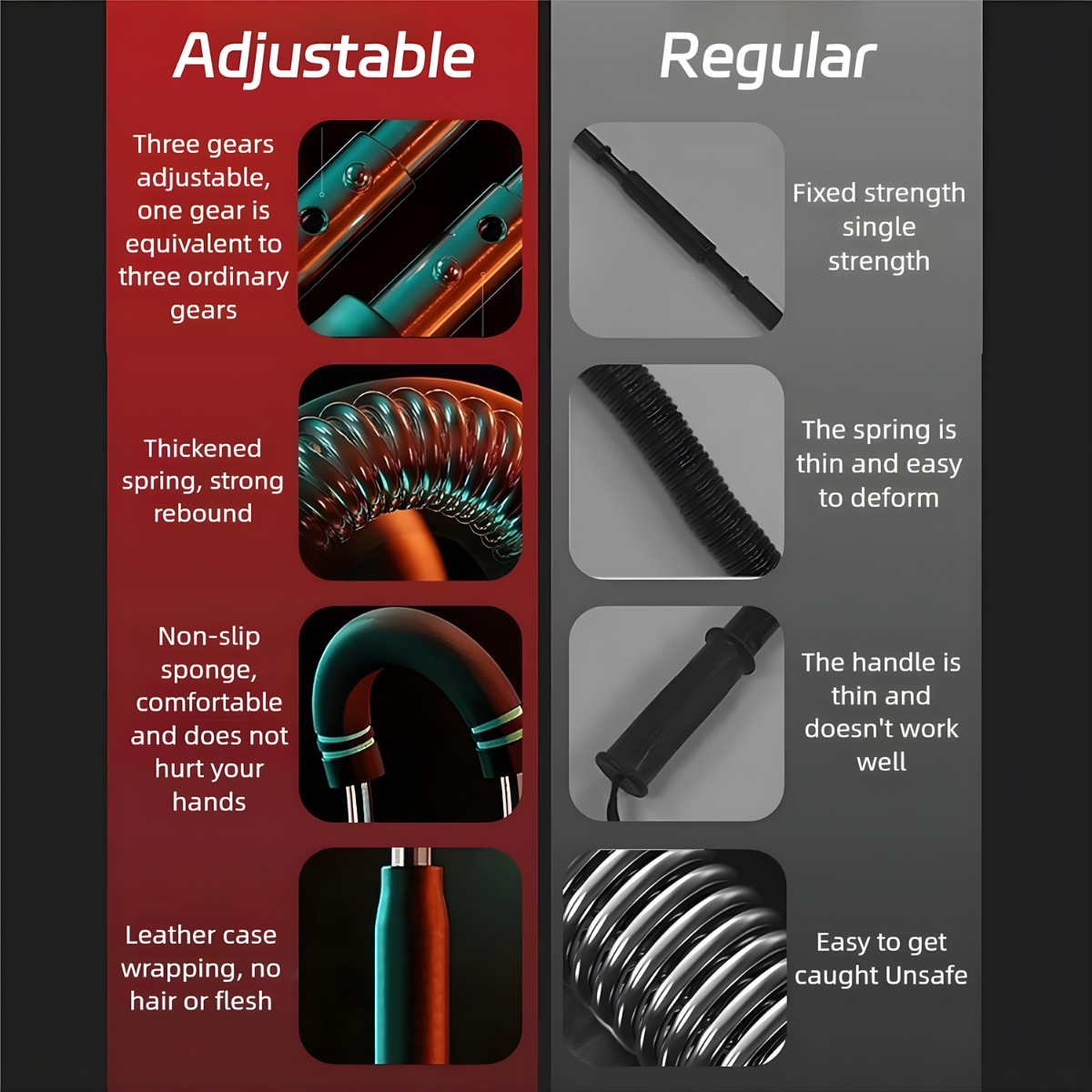 Material: High-tension steel spring + foam handles