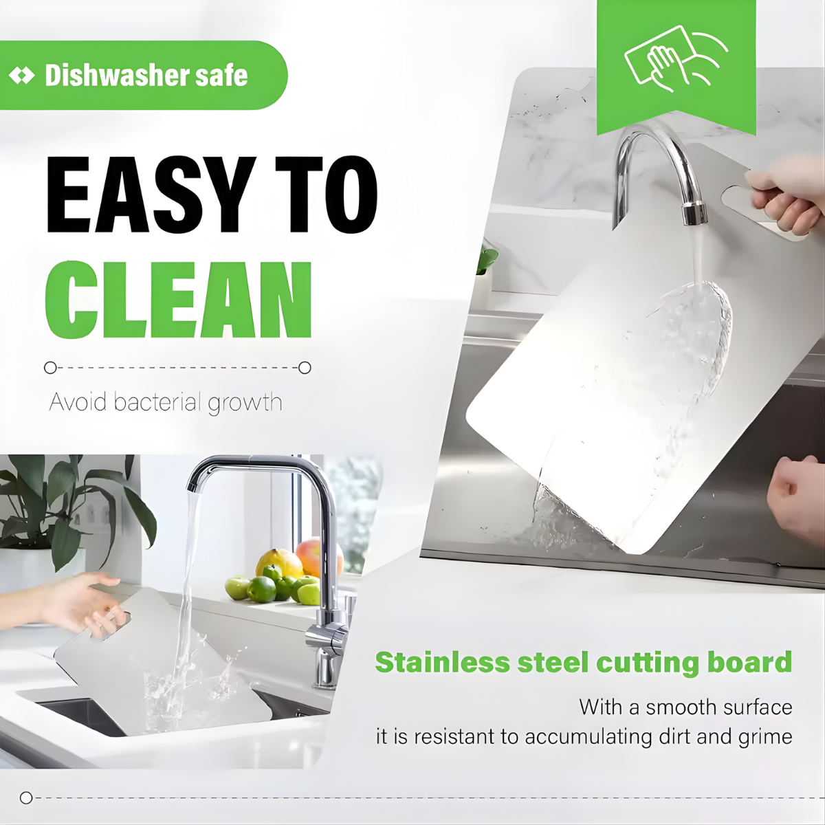 While it’s easy to clean by hand, you can also wash the stainless steel chopping board in the dishwasher for added convenience.