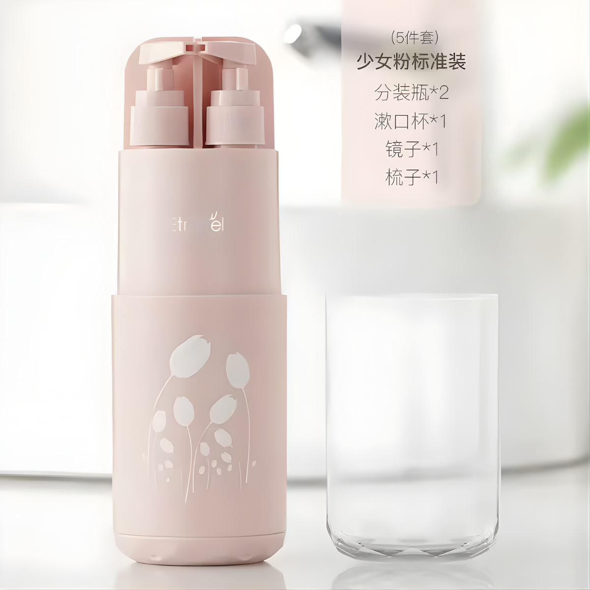 1. Pour shampoo, shower gel, or mouthwash into the included bottles