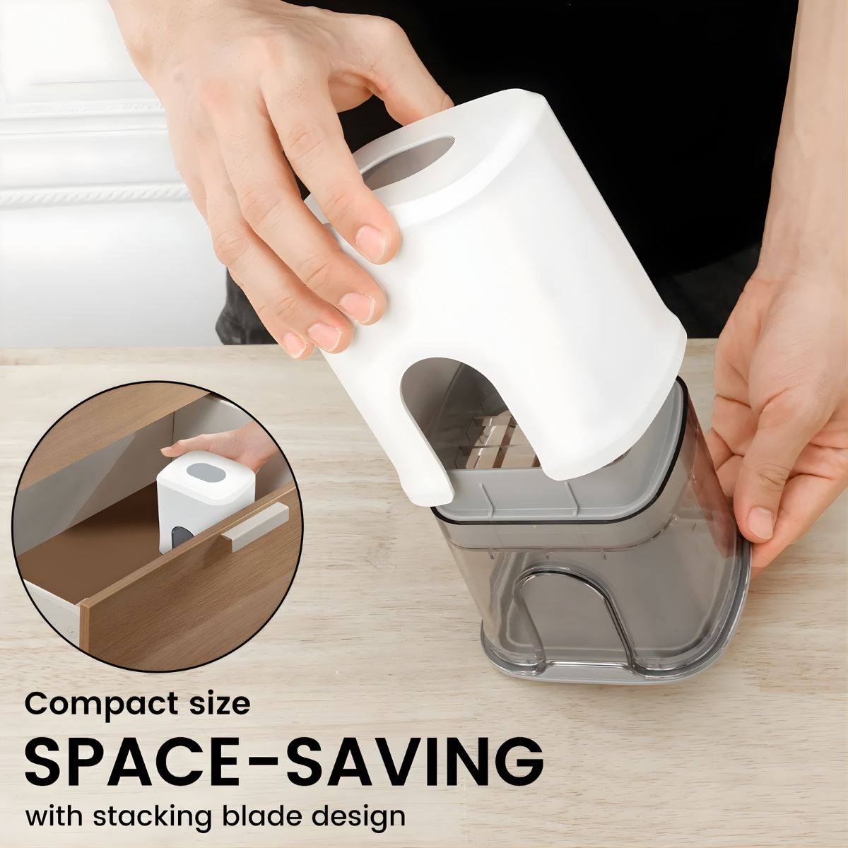 A: Not at all! Its compact design fits perfectly into most kitchen drawers or cabinets, saving you valuable space.