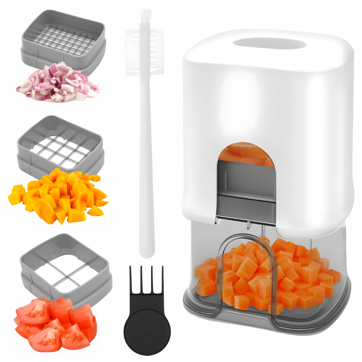 Tired of spending forever chopping vegetables by hand? The Multifunctional Vegetable Chopper Dicer is here to change the game! With just a press, you can chop onions, potatoes, fruits, and more in seconds – no tears, no mess, and no hassle!
