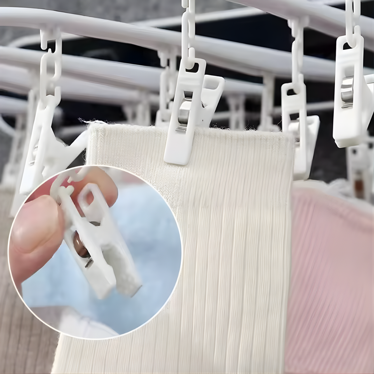 This foldable drying rack mounts neatly on your wall and gives you 24 sturdy hooks to hang socks, underwear, baby clothes, towels, and more. When you’re done, it folds flat against the wall—almost disappearing. No floor racks, no tangled hangers, no wasted space.