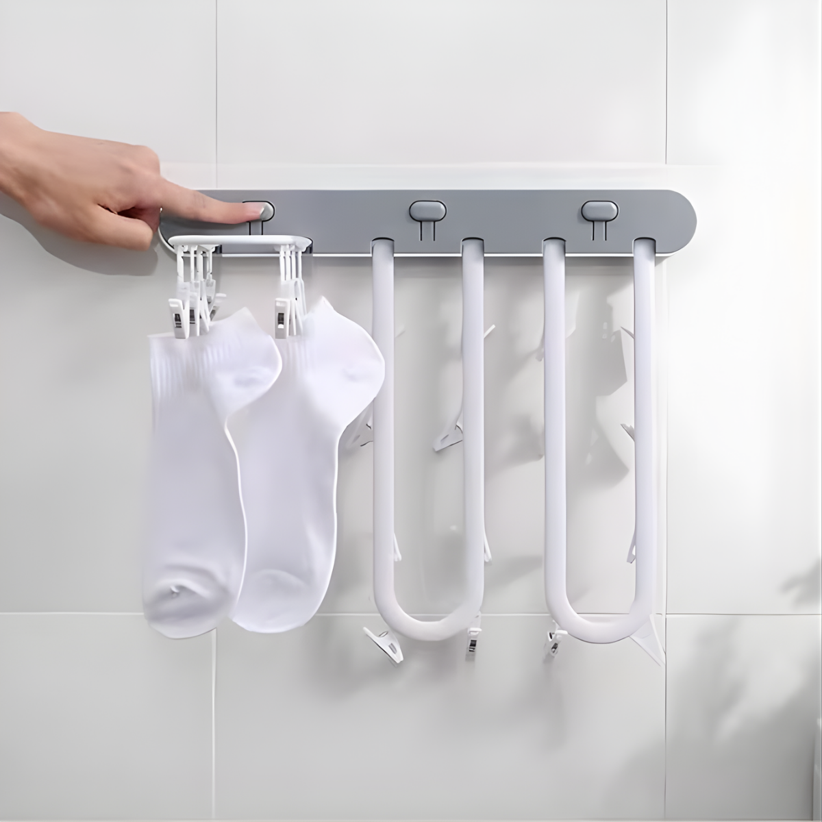 Struggling with wet clothes taking over your bathroom or balcony? This wall mounted drying rack folds flat when not in use and opens to hold up to 24 items at once. Perfect for socks, underwear, and small clothes—clean, compact, and incredibly convenient for everyday laundry.
